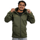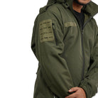 1. Combat Softshell Construction: Men's green tactical jacket designed with a durable softshell exterior for dependable outdoor and adventure wear.