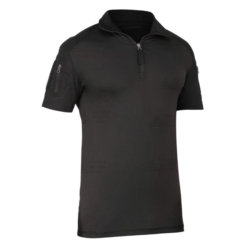 Indian Sports Gear Men's Tactical Half Sleeves T-Shirt 1/4 Front Zipper - Lightweight