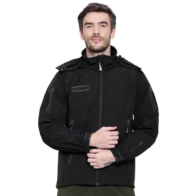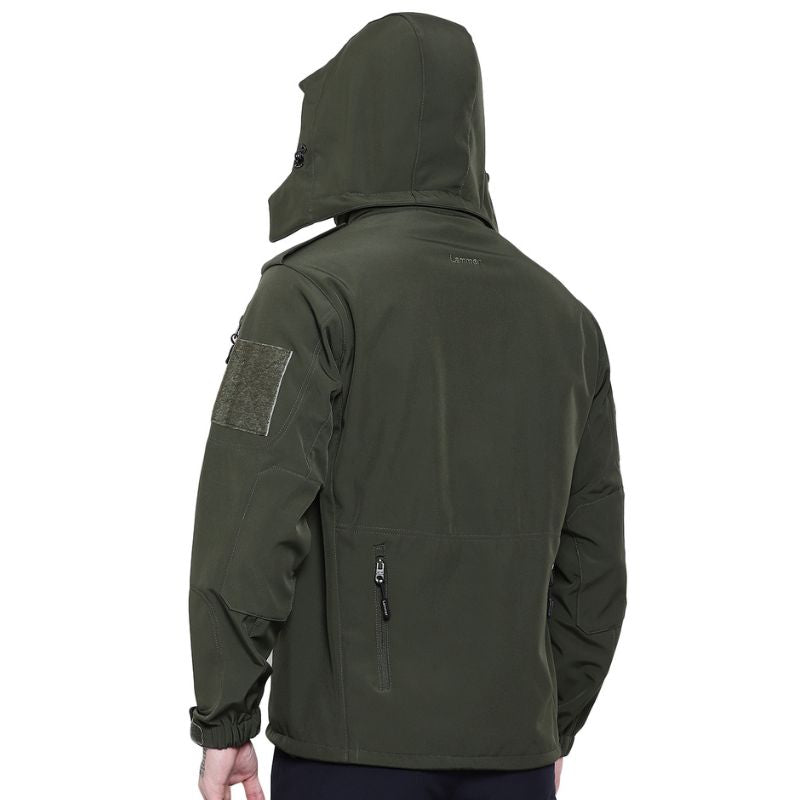 Introducing the Lammer Men's Full Sleeves Army Jacket, the ultimate outdoor companion for those who demand both style and functionality. Designed to withstand the harshest mountain weather, this jacket is made with durable softshell fabric and features a water-repellent treatment to keep you warm and dry in the coldest and wettest conditions. The windproof construction ensures protection against strong winds, while the snug fit offers extra warmth. Equipped with a zippered hood for added protection against rain or snow, this jacket also includes reflective accents to enhance visibility in low-light conditions, ensuring your safety during evening or early morning adventures. Whether you're skiing, trekking, or simply enjoying a walk in the city, the Lammer Men's Full Sleeves Army Jacket is designed to meet all your outdoor needs. This jacket is a must-have for winter outdoor activities, offering superior comfort, warmth, and protection. Ideal for use in cold areas like northern India during winters and mountainous regions, it can also be layered with additional clothing in extremely cold conditions. In the monsoon season, this jacket is perfect for keeping you dry and comfortable in south India.