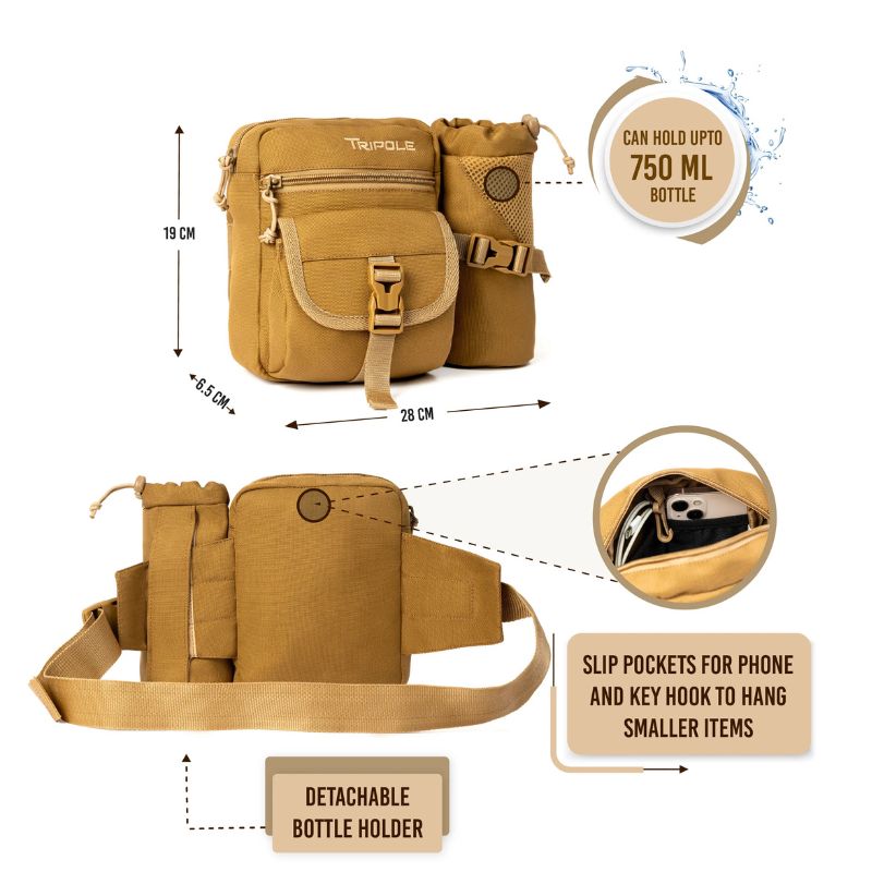 Tripole Ranger Multi-Utility Waist Pack with Detachable Bottle Holder Hiking Waist Bag & Sling- Pack of 2