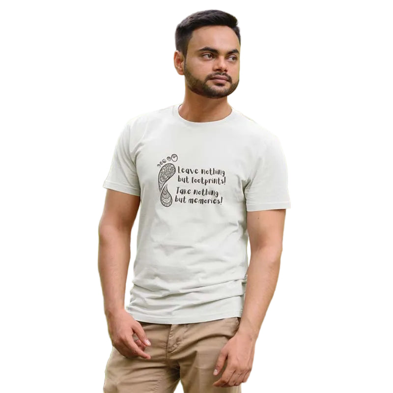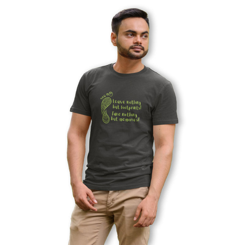 The Mahua Store Men's Leave Footprints-Take Memories Print T-shirt
