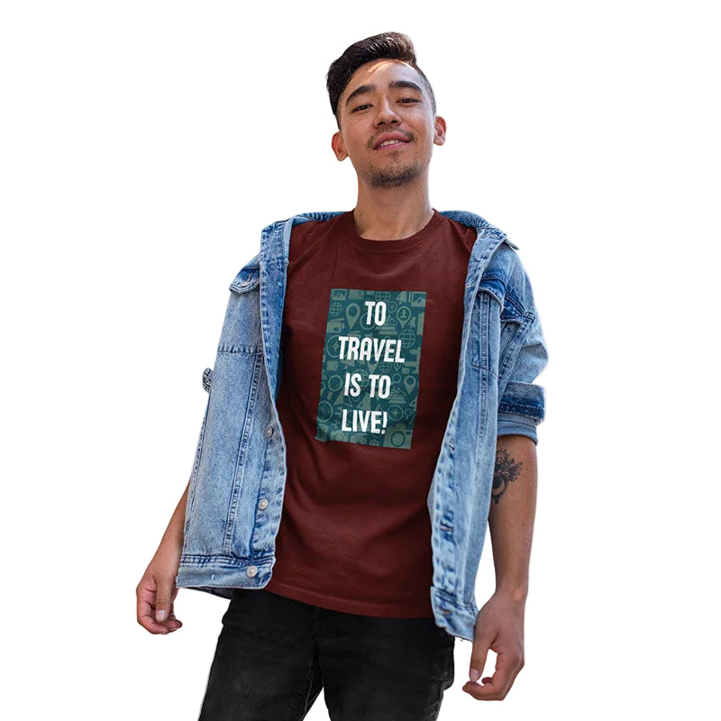 The Mahua Store Men's To Travel Is to Live Print T-shirt