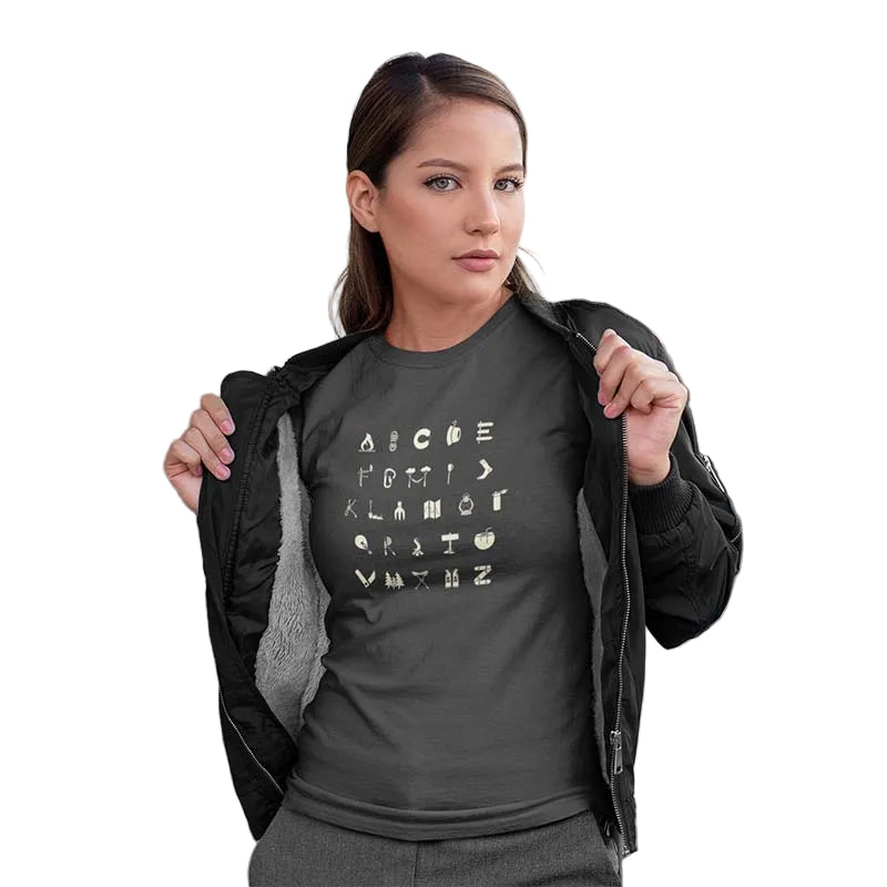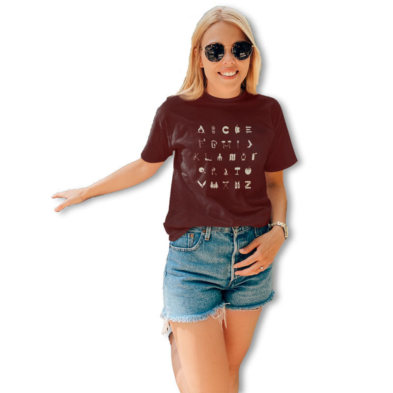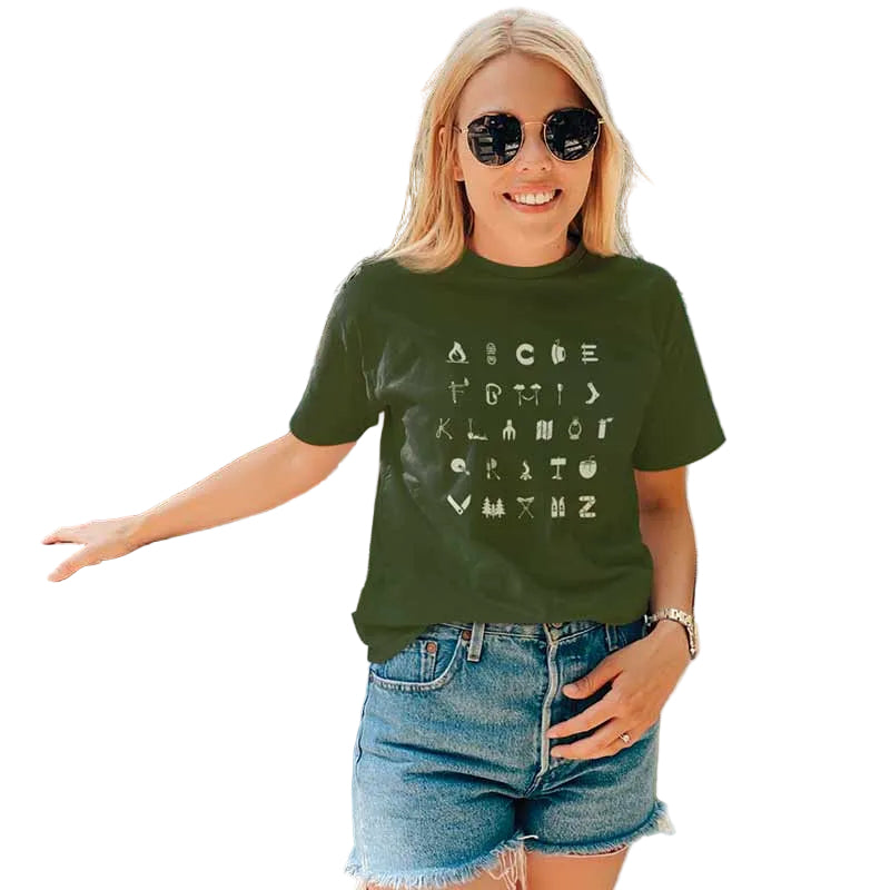 The Mahua Store Women's Camping A to Z Print T-shirt