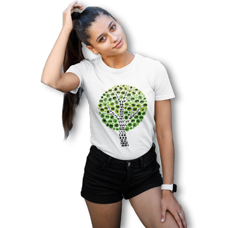 The Mahua Store Women's Forest Force Print T-shirt