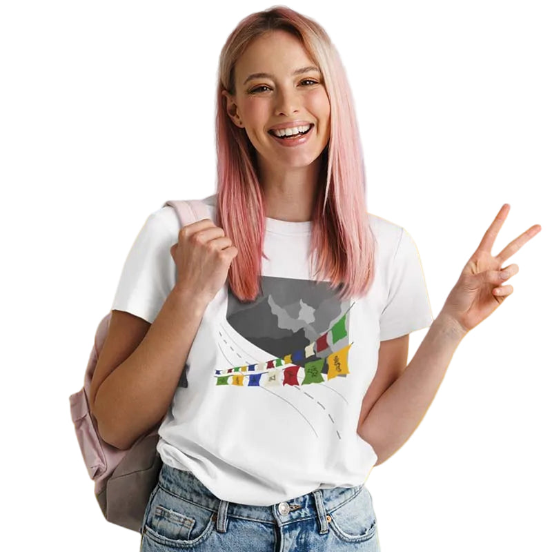 The Mahua Store Women's Prayer Flag Print T-shirt