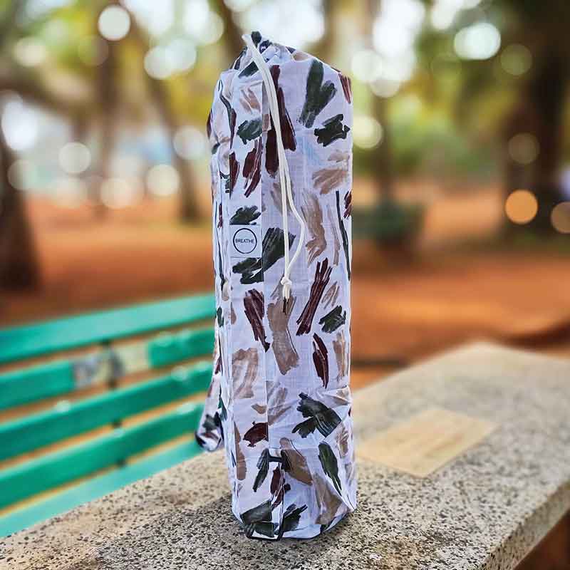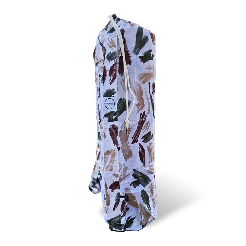 Introducing the SkiD O2 Eco-Lite Minimalist Mat Yoga Bag, a beautifully designed bag for the minimalist yogi who values simplicity, comfort, and style. Crafted from high-quality cotton and adorned with colorful brush strokes and stripes print, this bag is both fashionable and functional. The SkiD O2 Eco-Lite Minimalist Mat Yoga Bag is perfect for carrying your yoga mat with ease and comfort. Its lightweight design is ideal for those who prefer to travel light, making it the perfect companion for your yoga practice, whether you're walking, biking, or hiking to your session. Designed to fit all non-foam yoga mats ranging from 2mm to 10mm thickness, this bag ensures versatility and convenience. The minimalist design, free from pockets, focuses on providing a streamlined and straightforward carrying solution without any unnecessary frills. This makes it the preferred choice for those who appreciate simplicity and efficiency in their accessories. The bag's easy drawstring opening allows quick and hassle-free access to your mat, while the adjustable double straps ensure a balanced and comfortable carry on your shoulders. This thoughtful design provides maximum comfort and utility, making your journey to and from your yoga practice seamless and enjoyable.